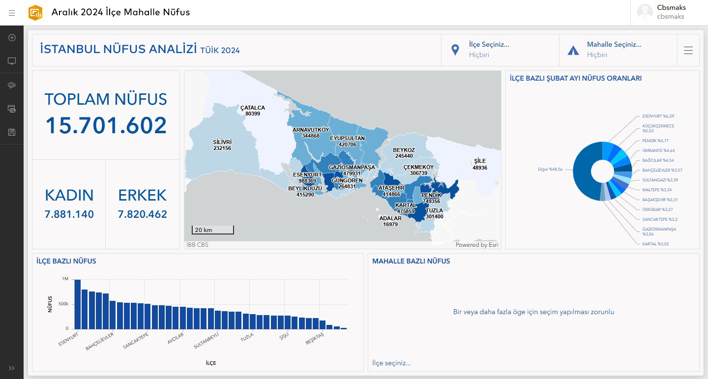 Bu çalışma, ArcGIS Enterprise’ın Dashboard modülünü temel alarak TÜİK 2024 Aralık İstanbul nüfus verileriyle bir ‘İstanbul Nüfus Analizi’ dashboardunun nasıl hazırlanacağını öğretici bir biçimde ortaya koymaktadır; bu nedenle adımlar ve komutlar ilgili ürün bağlamında sunulmuştur.