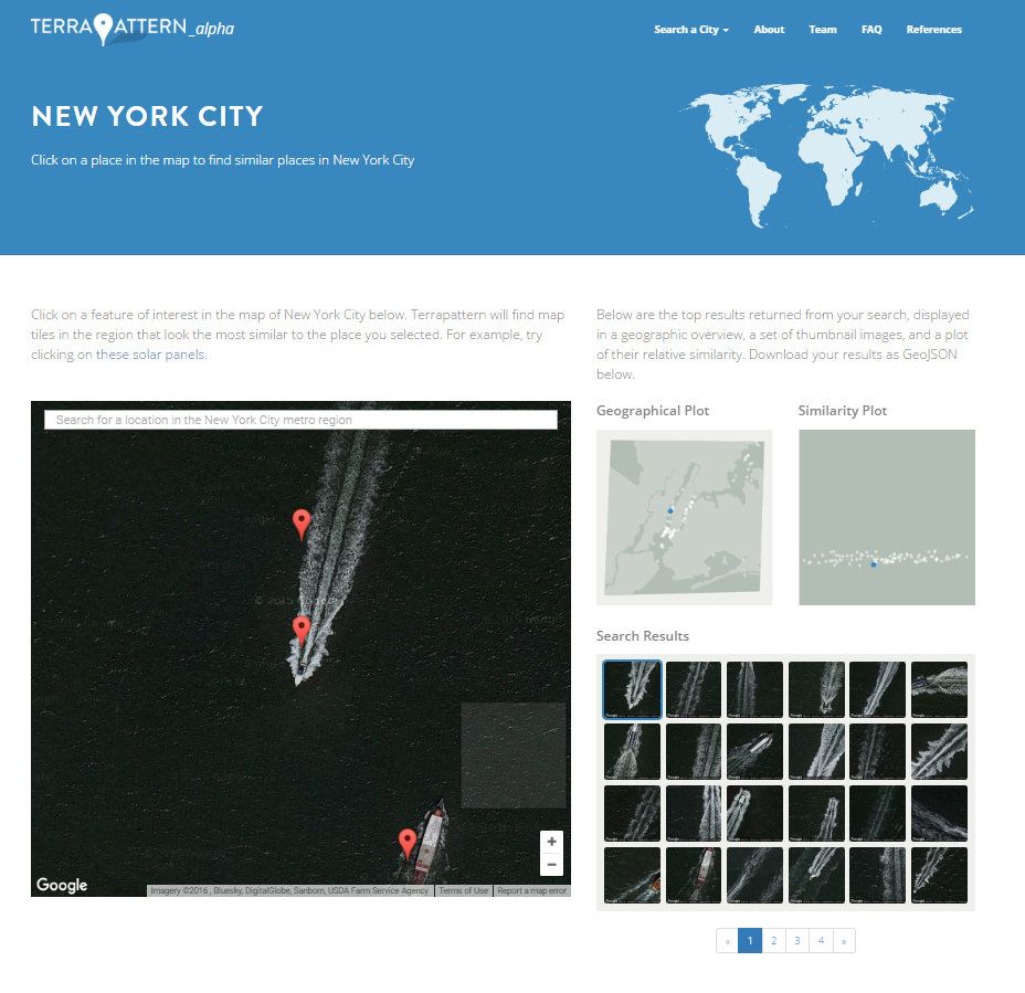 Henüz geliştirme aşamasında olan Terrapattern projesi ile arama motorlarındaki görsel arama mantığında arama yapmak mümkün. Şimdilik Pittsburgh, San Francisco, New York ve Detroit şehirlerinde arama yapılabiliyor.