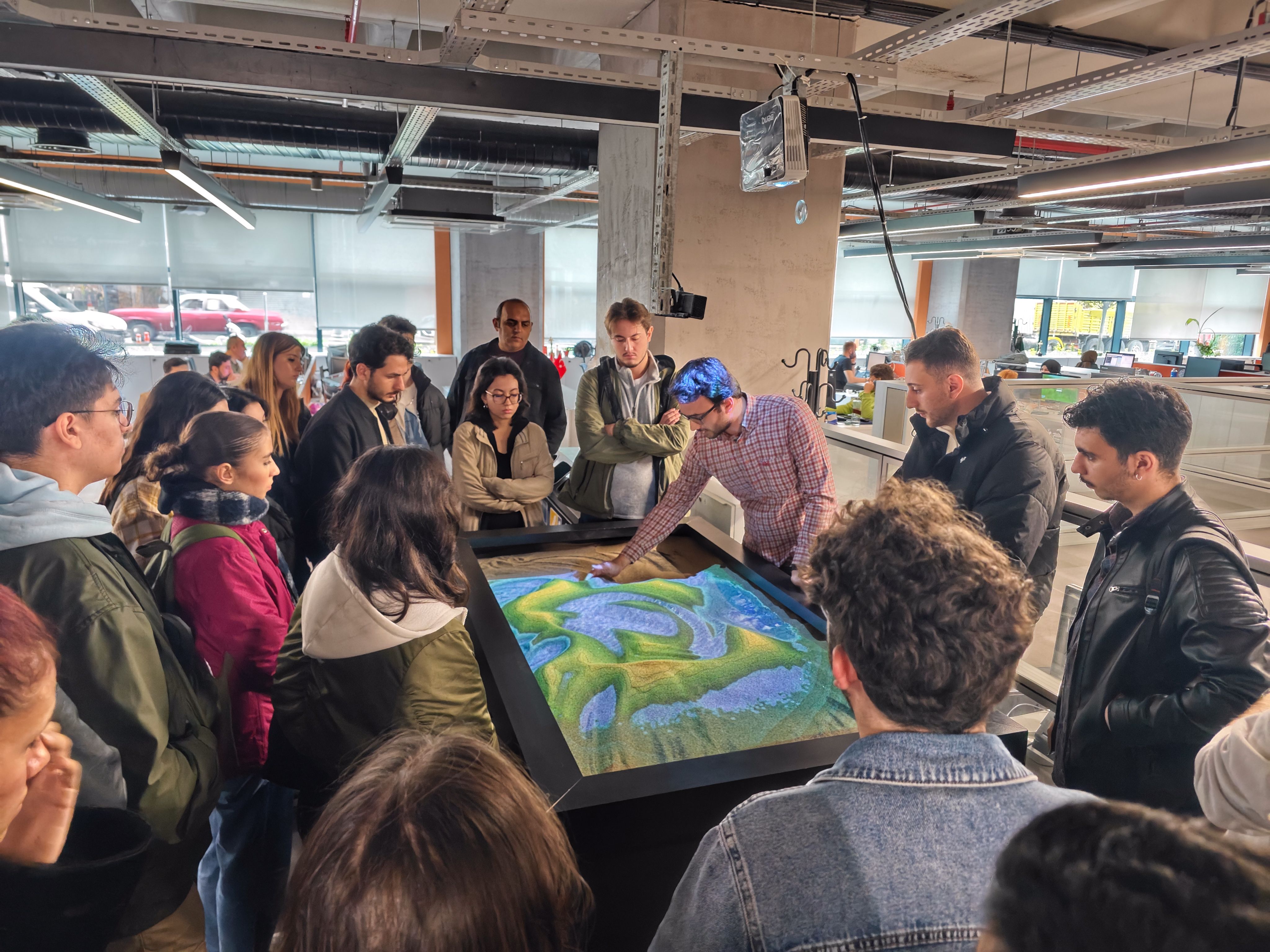 Öğrenciler ile uygulamalı olarak AR SandBox deneyimi yaşadık. CBS projeleri ve çalışmaları hakkında bilgi ve tecrübe paylaşımında bulunduk.