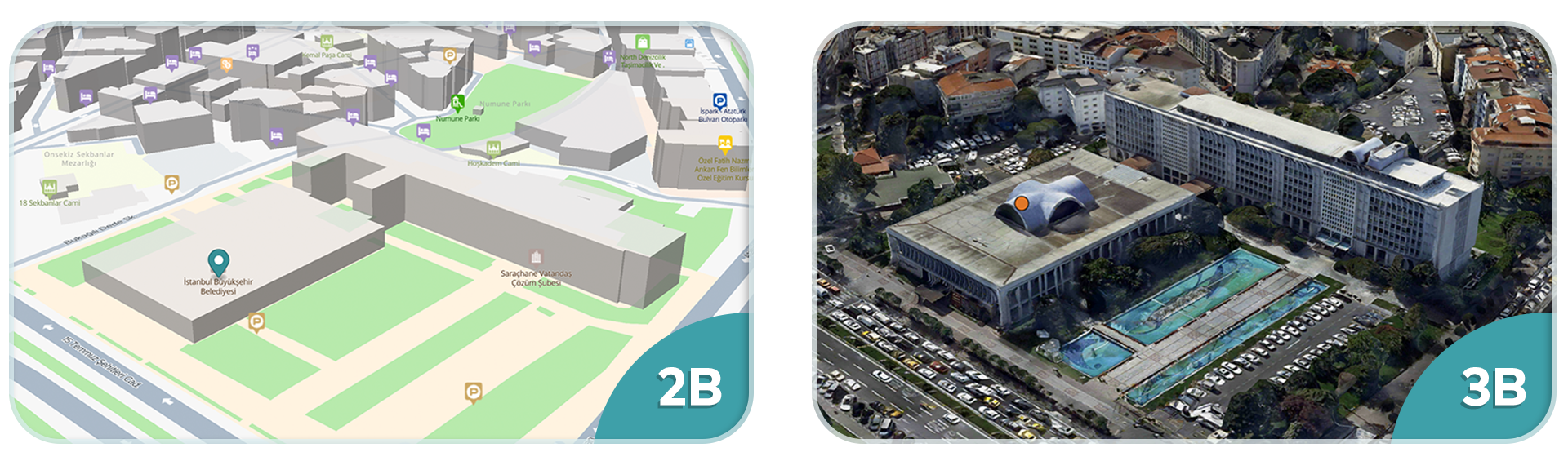 Dijitalleşen kamu hizmetlerinin öncü ve özgün bir örneği olan Harita İstanbul uygulamasının 3B özelliği ile İstanbul’un 3 boyutlu modelinde dilediğince gezebilir, kadim şehir İstanbul’un tarihi ve kültürel mirası ile unutulmaz bir deneyim yaşayabilirsiniz. Mobil cihazlardan, cihazınızı döndürerek 3 boyutlu modelde şehre farklı açılardan bakabilirsiniz.