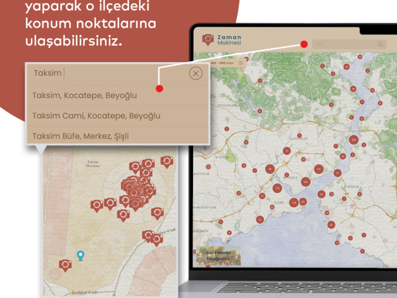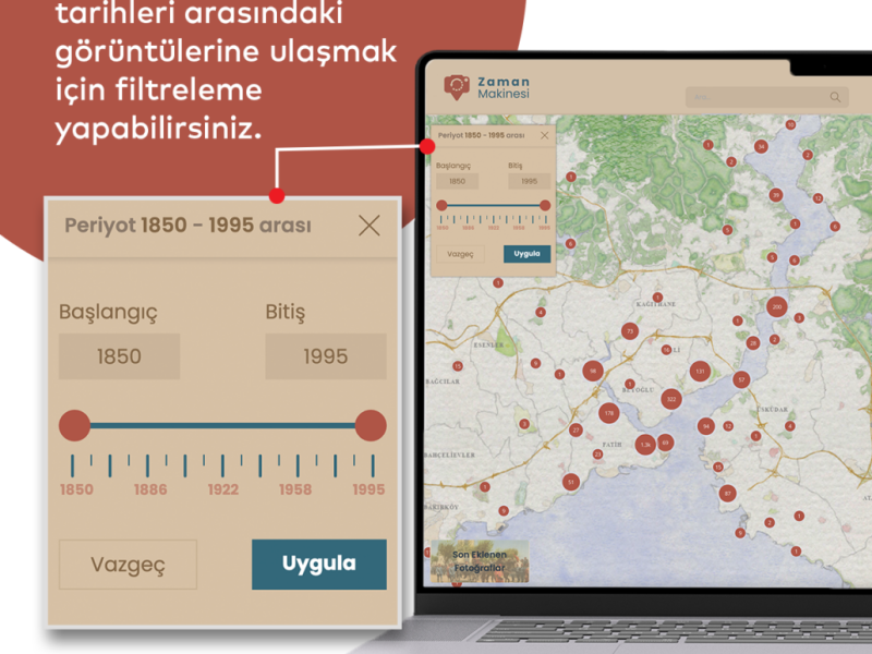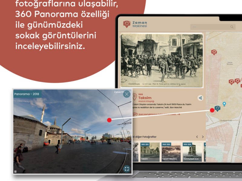 İstanbul’un farklı noktalarında, 1850 yılı sonrası çekilmiş nostaljik fotoğraflarının harita üzerinde konumlandırılarak, görsel bilgilerle sunulduğu Zaman Makinesi web uygulaması İstanbul Büyükşehir Belediyesi Coğrafi Bilgi Sistemi Şube Müdürlüğü tarafından; hızlı, kullanıcı dostu ve mobil uyumlu ara yüzü ile kullanıcılara sunuldu.